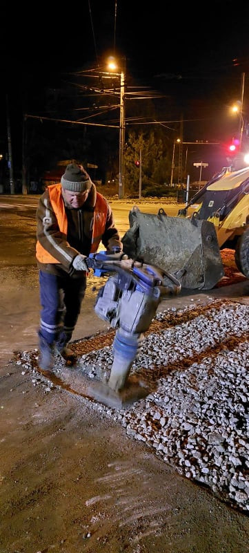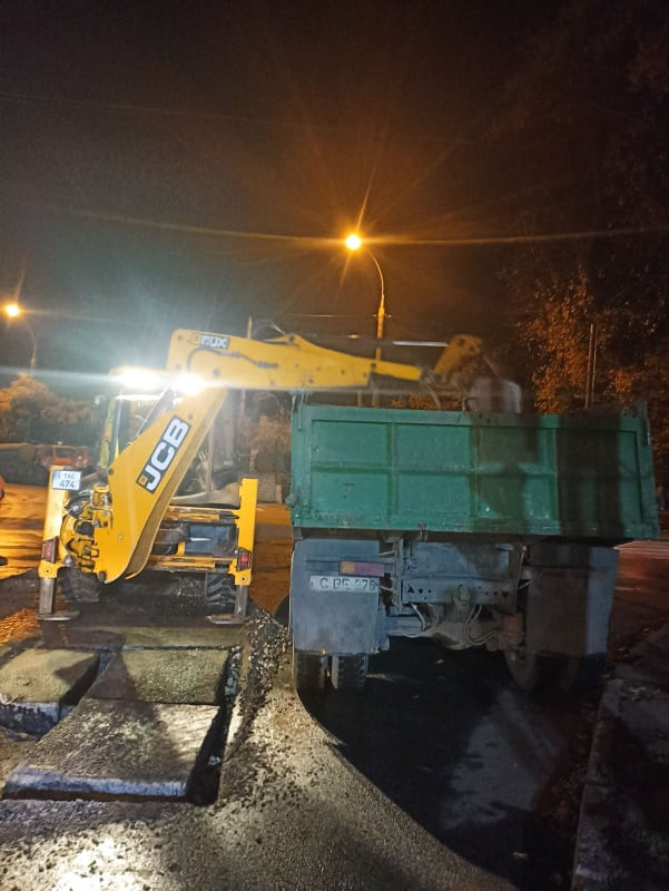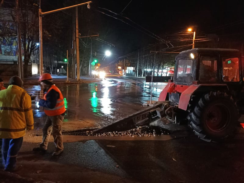 Lucrări de remediere a avariei efectuate în timpul nopții!