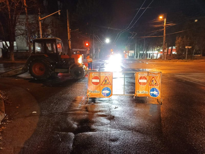 Lucrări de remediere a avariei efectuate în timpul nopții!